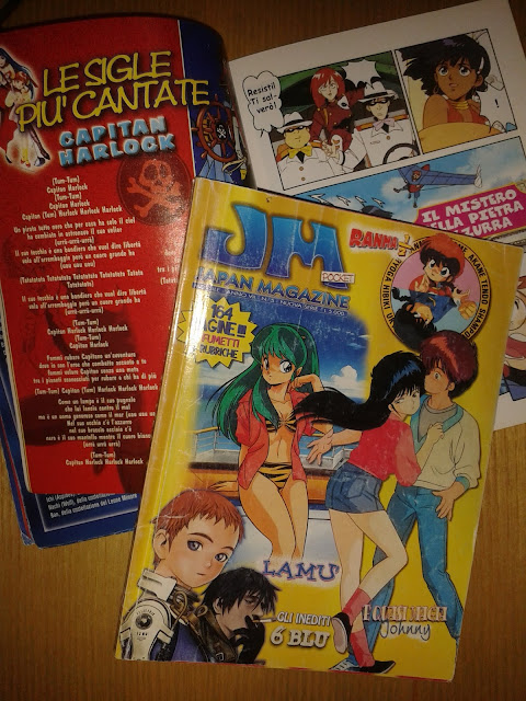 In Italia l’ondata anime di inizio anni novanta portò alla formazione di una coscienza otaku, di una passione precisa rivolta ai prodotti d’intrattenimento di origine giapponese. In quel periodo fiorirono numerose riviste, una delle quali è divenuta celeberrima perché ha attraversato varie fasi fino alla “mania” e fino agli anni duemila. Si tratta di Japan Magazine, rivista famosa anche perché accusata di essere… pirata! Rivediamo assieme la sua storia. LE PRIME ANNATE Japan Magazine nasce nel 1991. Al prezzo di sole 3000 lire puntava tutto sul colore e sulle (tante) immagini dei nuovi eroi della televisione. Dopo avere presentato un fumetto autoprodotto con i robot nagaiani, iniziò a utilizzare (pare senza autorizzazione) gli anime comic di personaggi famosi come Lupin III, Lady Oscar, Porco Rosso… (Per chi non lo sapesse, l’anime comic è un fumetto realizzato con i fotogrammi di un’opera animata). La particolarità era che i grafici della rivista nemmeno si degnavano di ribaltare le tavole, rendendo spesso incomprensibili le sequenze della storia, peraltro spesso tradotta alla buona con dialoghi totalmente inventati. In ogni caso fu un grosso successo per la casa editrice milanese Edizioni Eden, che in seguito cambierà nome in Edizioni Sirio, Gruppo Editoriale Sirio e quindi G.e.s. Per un certo periodo la rivista da mensile passò alla periodicità quindicinale, tornando però mensile fino alla prima chiusura nel 1994. GLI ANNI NOVANTA Un breve ritorno di Japan Magazine si ebbe in formato più piccolo rispetto agli esordi: uno spillato A5. Vennero qui presentati nientemeno che gli anime comics dei film di Dragon Ball Z, sempre con il sospetto di pirateria e con traduzioni spesso inventate di sana pianta. Intanto le rese di JM venivano distribuite in versioni accorpate o con copertine nuove, oppure all’interno delle buste sorpresa. IL RITORNO IN GRANDE A sorpresa, con contenuti scarni e ristampando materiale già edito (per esempio i fumetti di Lupin III e Gundam F-91), Japan Magazine torna in edicola nel formato grande alla fine del 1998, al prezzo di 5000 lire. Migliora leggermente nei numeri successivi, però lo storico formato gigante viene presto abbandonato e la rivista sembra ora puntare soprattutto sulle rubriche più amate dai lettori. EDIZIONE POCKET Per soli tre numeri (di colore giallo, verde e azzurro), Japan Magazine diventa un pocket formato “Topolino”, passando alla brossura. All’interno continua il fumetto su Gundam, mentre arrivano Il mistero della Pietra Azzurra, Laputa e Galaxy Express 999. I servizi e le rubriche prendono una nuova linea ben precisa. IL NUOVO MILLENNIO Negli anni duemila JM torna al formato “quadernino” A5, e così resterà fino alla fine. È questo il periodo di massimo splendore per la rivista, che conosce un nuovo periodo di successo dopo quello dei primissimi anni novanta. Forse per non rischiare altri problemi legali, Japan Magazine cessa la pubblicazione non autorizzata di anime comics concentrandosi solo su servizi e rubriche. RINNOVAMENTO E CHIUSURA DEFINITIVA Con questo formato JM prosegue fino alla alla chiusura definitiva. Cambia logo, che imita il taglio degli ideogrammi, e si moltiplica in varie riviste similari, con speciali e uscite dedicate a specifici argomenti. In questi anni tornano anche gli anime comics di Occhi di Gatto, Heidi e Sailor Moon, ma sono “fatti in casa” fotografando sequenze dei cartoon e aggiungendo scritte. In alcuni casi si nota persino il logo di Italia 1. Peraltro, dialoghi sensati e regole grammaticali rimangono un optional: giudicate voi da questa pagina. Una pagina di anime comics tratti da Sailormoon con dialoghi imbarazzanti COS’È JAPAN MAGAZINE Al di là dei ricordi e della nostalgia, JM era a metà tra una fanzine (che però gode della ribalta dell’edicola) e una pubblicazione tipo Cioè. Molto spesso articoli e dossier presentavano svarioni da far rabbrividire anche i fan meno attenti: ricordo, per esempio, descrizioni di Dragon Ball dove si diceva che Goku e Vegeta fossero fratelli. Appare chiaro che non c’era molta professionalità, sebbene a lungo andare la redazione sia migliorata. La fortuna di JM la facevano le immagini: in un’epoca in cui il web non esisteva ancora, forniva notizie e illustrazioni sui personaggi più amati, da I Cavalieri dello Zodiaco fino a Dragon Ball, passando per Rossana. Mac Ross e Mizaki (al posto di Macross e Miyazaki): così, giusto come esempi… LE RUBRICHE Tra gli spazi che hanno decretato il successo della rivista sicuramente i più ricordano La posta del Drago (o Dragon Mail). Il Drago era un redattore, o un collaboratore esterno, che gestiva un angolo della posta nel quale non c’erano quasi mai missive relative agli anime e manga, ma riguardavano problematiche, gioie e dolori dei ragazzi che scrivevano. La rubrica fu anche al centro di un caso di cronaca: un ragazzo indicò al Drago il giorno, l’ora e il luogo del suicidio che intendeva compiere. Una sorta di scherzo o forse no, comunque sventato dall’intervento della polizia. Per parlare di manga e anime fu istituita in seguito la Posta di Mathilda. Immancabili gli scambi nella rubrica intitolata La fiera del Bambù. Lezioni di disegno e lezioni di lingua giapponese erano un appuntamento fisso. Anche la pagina con il testo di una famosa sigla dei cartoon divenne immancabile. Tra le altre cose si ricordano le “copertine” per le vhs con gli episodi registrati privatamente dalla tv. Talvolta venivano presentate opere non propriamente giapponesi, come articoli sui Power Rangers, Il Re Leone e South Park. JM regalava anche vari gadget: dagli adesivi staccabili direttamente dalla copertina, come Cioè, fino ai poster e le card. Grande spazio era riservato ai disegni dei lettori, che ritraevano i proprio beniamini. Il successo di questa iniziativa portò, a ridosso della chiusura della testata, persino a organizzare una mostra dal vivo: le centinaia di disegni ric